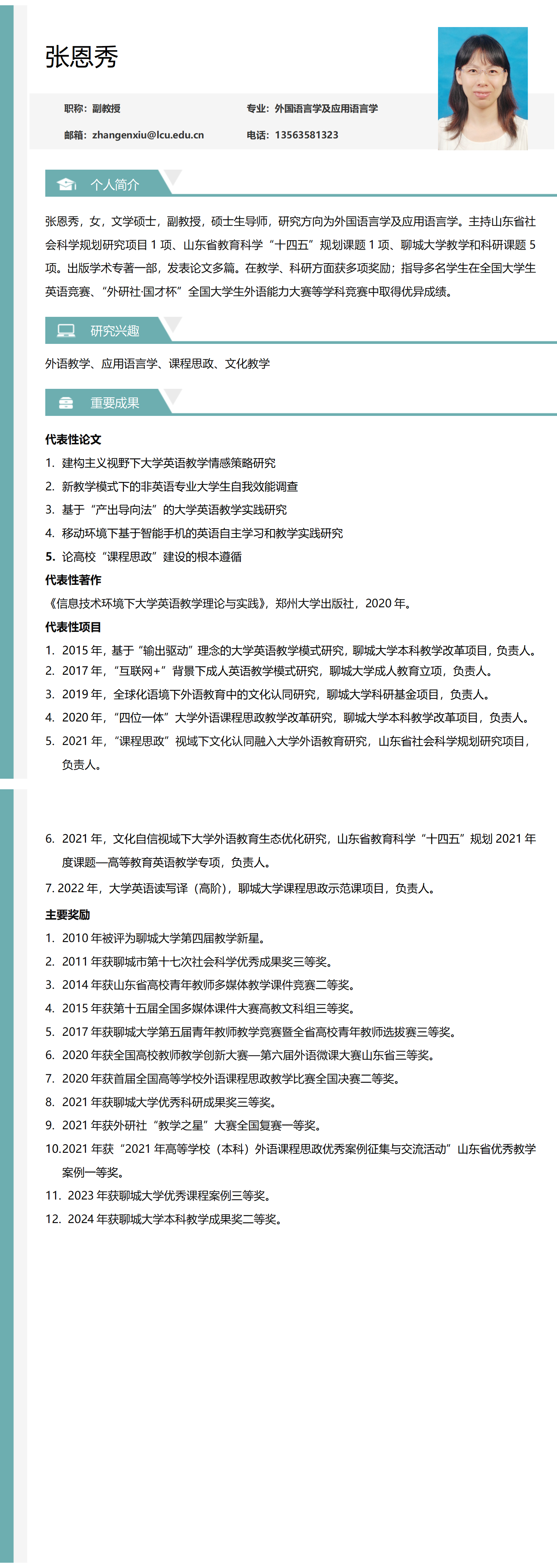 外国语学院各专业部分硕士研究生导师,各年度招生资格以学院当年度公布人员名单及各自归属专业方向为准。