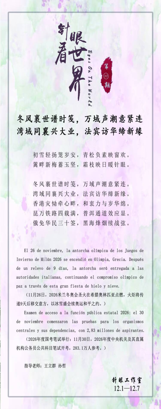 冬风裹世谱时笺,万域声潮意紧连