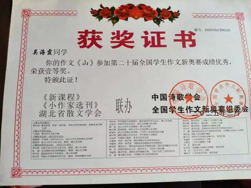 外国语学院吴海霞第二十届全国学生作文新奥赛一等奖