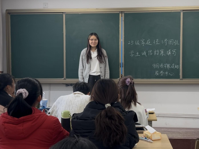 为增强学生诚信观念,夯实校园诚信文化建设基础,11月24日,外国语学院资助服务部于A112教室组织开展25级家庭经济困难学生诚信档案填写活动。活动面向学院25级家庭经济困难学生,得到了学生们的积极响应与踊跃参与。