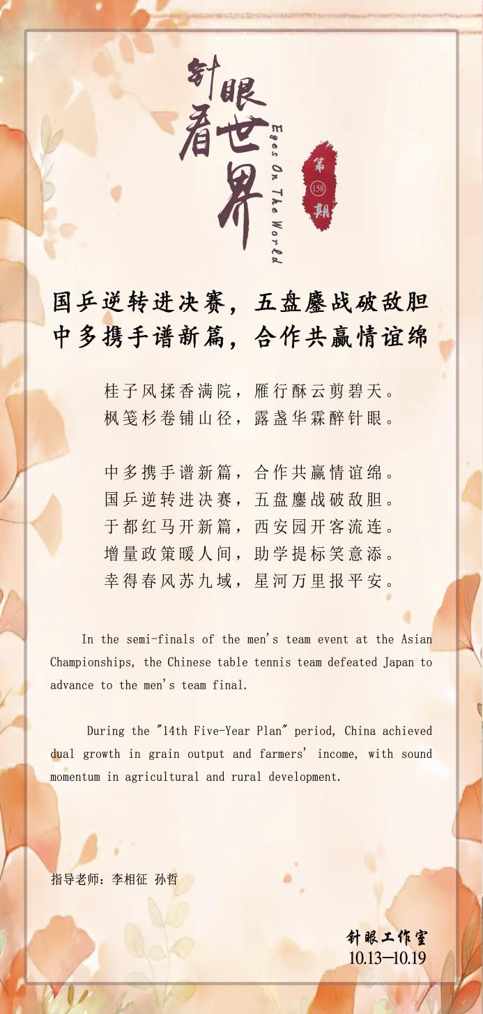 In the semi-finals of the men's team event at the Asian Championships, the Chinese table tennis team defeated Japan to advance to the men's team final.