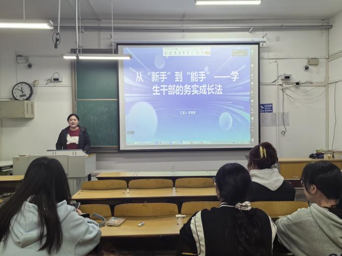 为强化责任担当,提升学生干部管理、协作、服务能力,推动学院工作规范化、高效化,以实现各项工作的有序推进,10月19日,外国语学院于西1#A116开展“青春·汇”系列讲座——“从‘新手’到‘能手’学生干部的务实成长法”学生干部培训会。本次会议特邀2022级优秀学生彭秀清担任主讲人,外国语学院学生会各部门部长、副部长,各服务中心主任、副主任,23级至25级班团积极参与。