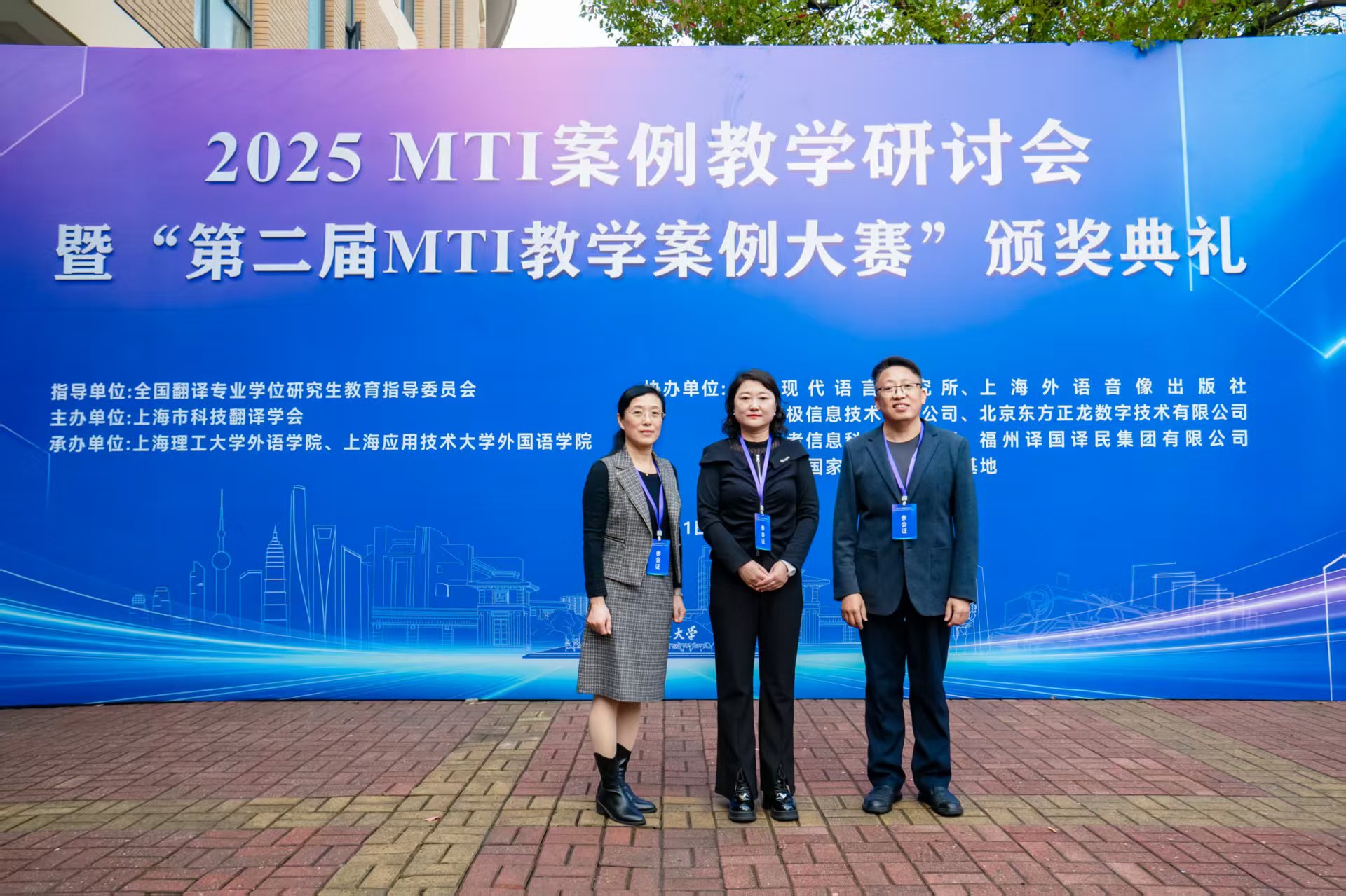 2025年11月1日,全国翻译专业学位研究生教育指导委员会指导、上海理工大学、上海应用技术大学承办的“2025MTI案例教学研讨会暨‘第二届MTI教学案例大赛’颁奖典礼”在上海应用技术大学召开,我院刘风山、李静、侯丽三位老师参会。