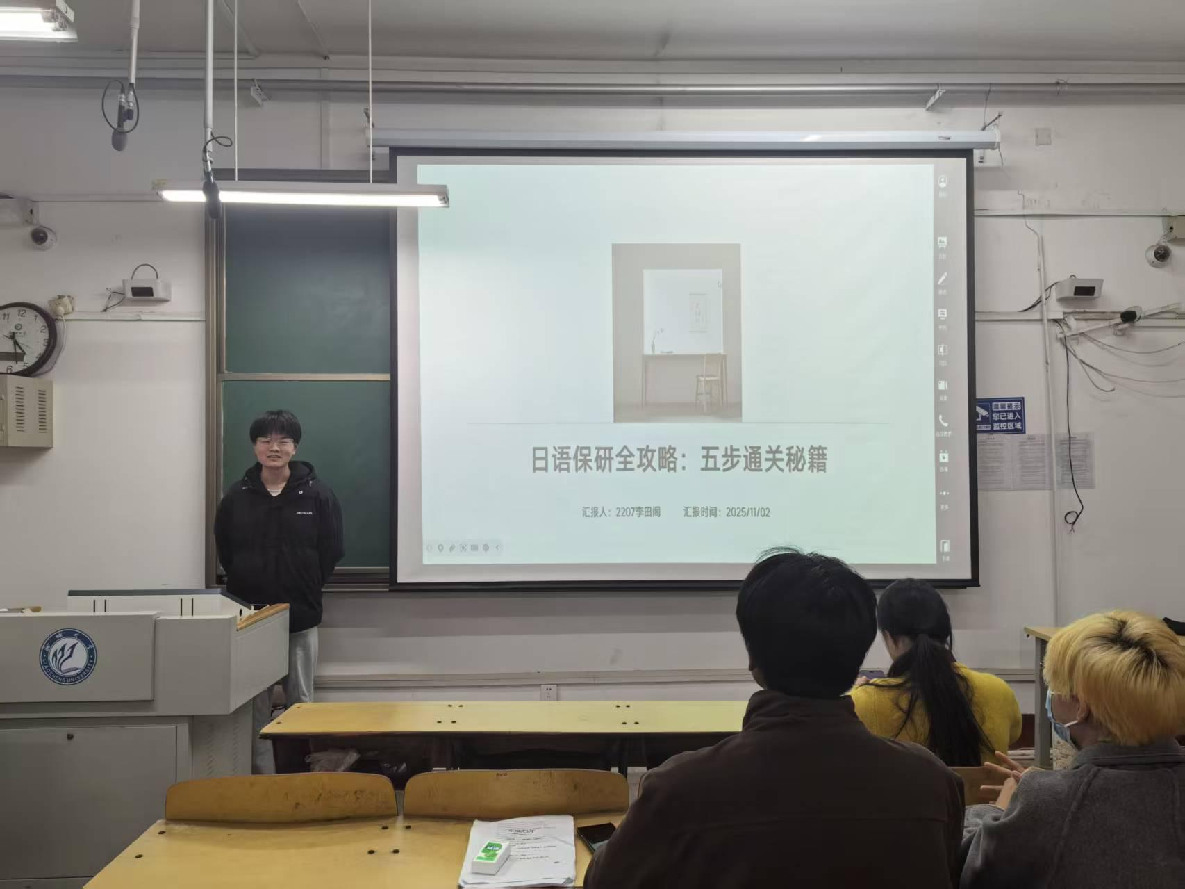 为帮助学生精准把握推免政策、明确升学规划,解决推免过程中的困惑与难题,11月2日,外国语学院于西1#A116教室开展“前路有光,引路有声”青春·汇系列推免经验分享会,本次活动特邀2022级优秀学生曹明俊、李田阁担任主讲人,外国语学院学生积极参与。