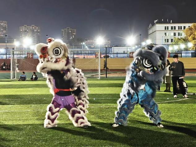 活动伊始,整个团队围坐成一个大圆圈,成员们手持荧光棒,随着活动节奏肆意摇摆,将现场氛围烘托得热烈而欢快。在两位主持人的精彩主持和队长的带领下,活动环节有序推进。精彩绝伦的舞狮表演率先登场,伴随着欢快的鼓点,灵动的姿态瞬间点燃全场。紧接着,双人舞蹈表演用默契的肢体语言演绎出别样风情。双人对唱表演以动人的歌声传递情感,独唱表演的天籁之音余韵悠长。流行音乐引起观众共鸣,使得现场欢呼阵阵。笛子表演则用悠扬的乐声营造出雅致意境,展现出不一样的魅力。此外,还有别出心裁的“用羽毛球拍打乒乓球”联合表演小游戏,趣味十足的形式让大家欢笑不断。活动尾声,参与活动的学生们共同举起印有“外国语学院乒羽联欢晚会”的红色横幅拍摄集体合照,将这一美好时刻永远定格。