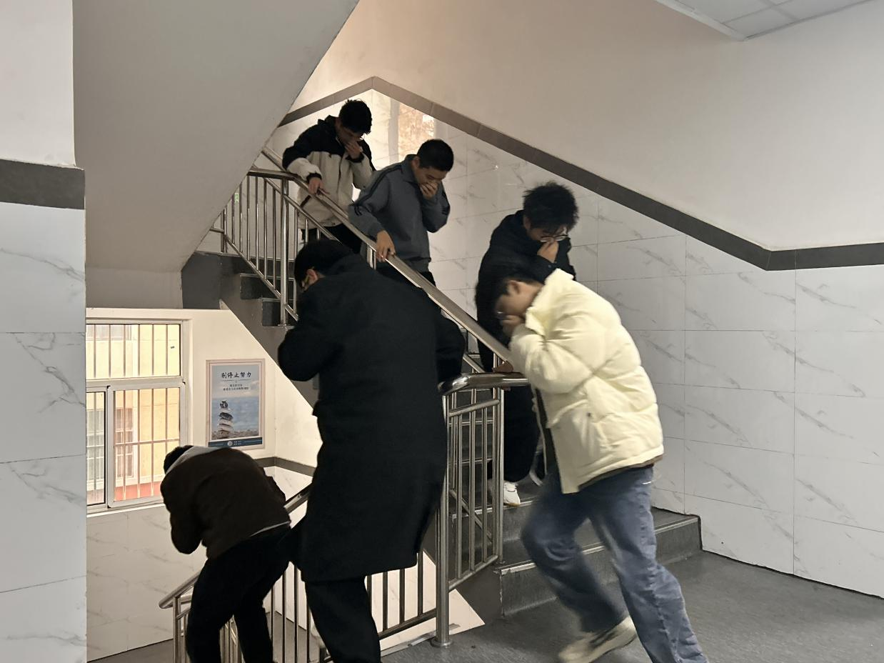 演练筹备阶段,活动负责人向学生们详细讲解逃生自救要点,让每一位学生都对演练流程、注意事项烂熟于心,为演练的顺利开展筑牢基础。同时,工作人员对宿舍消防通道、应急照明设备等进行全面排查,确保各类设施完好有效,为演练提供坚实保障。