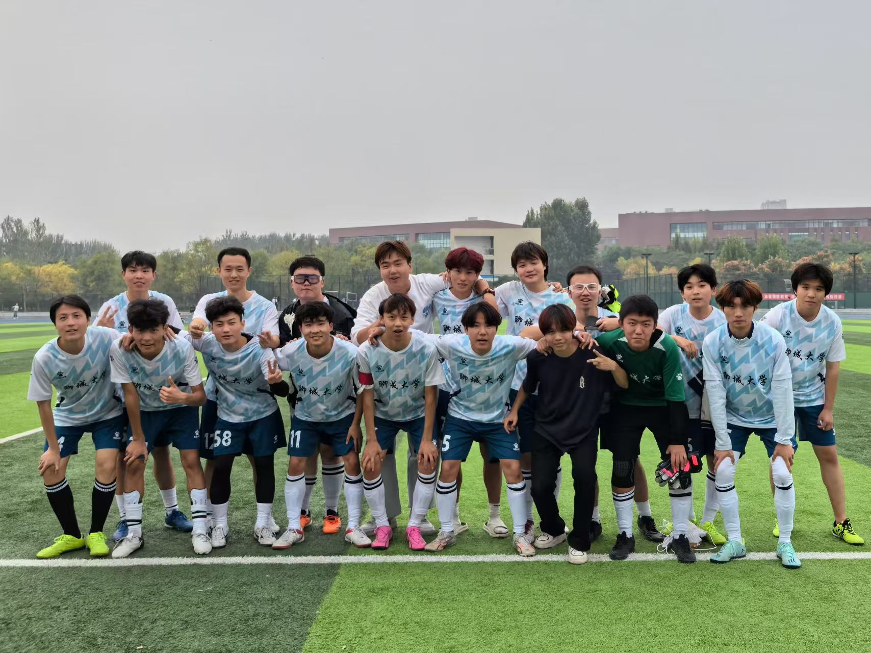 外国语学院足球队是外国语学院体育文化建设的重要组成部分,彰显了外国语学院积极向上的精神风貌。球队在各类校园赛事中的精彩表现,成为展示外国语学院体育风采的重要窗口。外国语学院足球队通过组织友谊赛、集训交流等活动,促进了与其他学院的沟通互动,增进了院系间的友谊与合作,为体育文化氛围的营造增添了浓厚色彩。现在,聊城大学第十一届足球联赛已经结束,我们也要以祝福的心情送别老队员。同时,外国语学院足球队也积极欢迎每一位热爱足球的学子加入。
