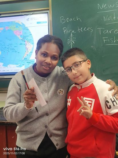 在“云游世界”环节中,Georgina老师不仅介绍了所罗门群岛的自然风貌与文化习俗,更巧妙融入中国传统文化元素,引导学生用英语讲述故宫、长城等中国故事。这一设计既增强了学生的民族自豪感,也培养了其在跨文化语境中传播中华文化的能力,实现了外语教学与价值引领的有机统一。