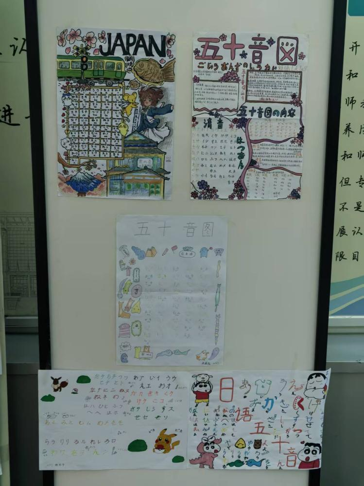 活动过程中,学生们积极参与,以书法为载体将五十音图与铭记历史的情感相融合。每一幅作品都透着对日语书写的认真,也藏着对革命先辈的敬意——有的笔力刚劲,尽显烽火精神;有的清雅端正,晕染和平之愿。这些作品里,不管是日语零起点的新生还是有基础的学生,都用五十音图在纸间织就了跨越语言的温度。