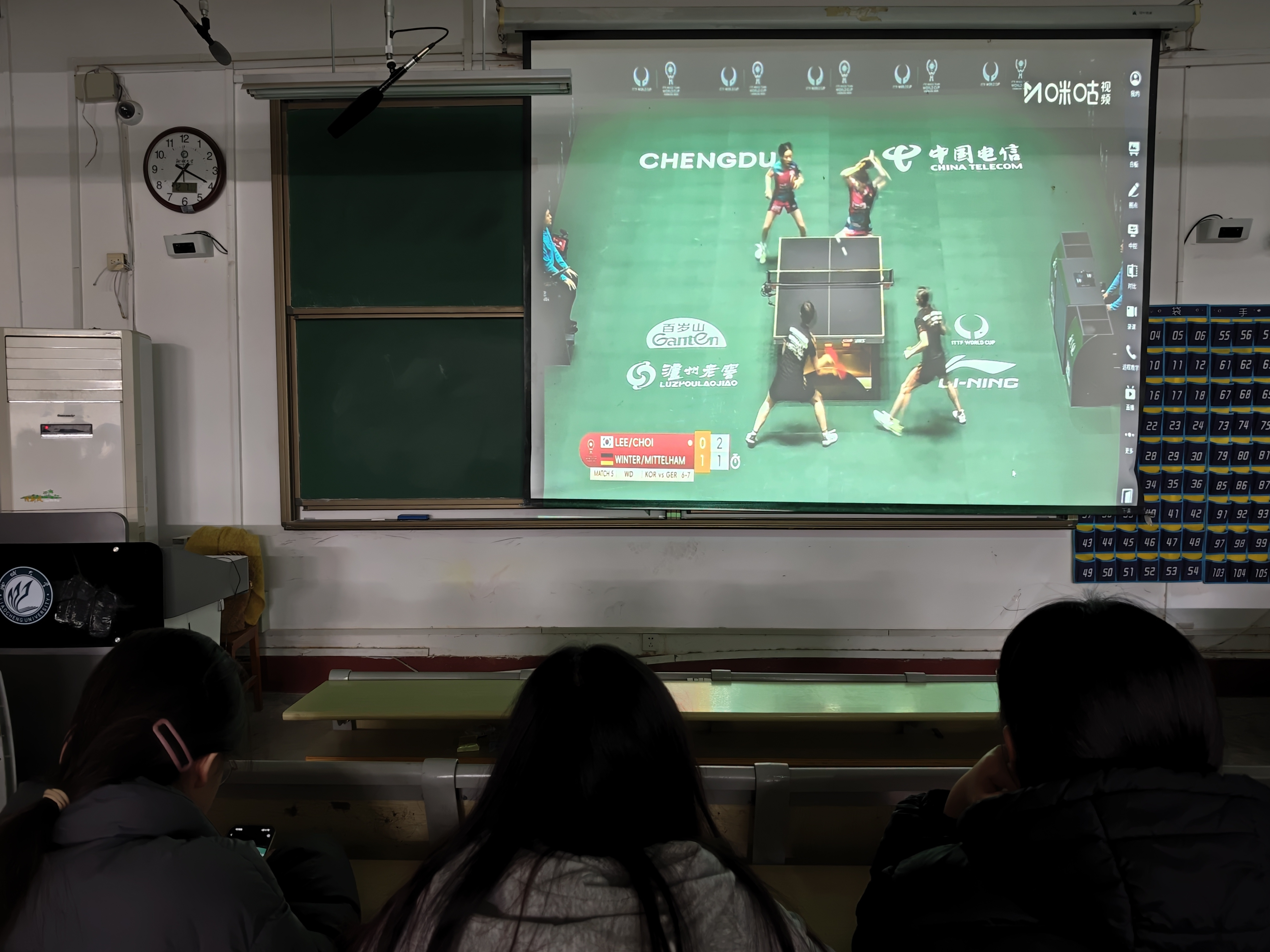 活动开始前,外国语学院学生工作人员提前调试影音设备,确保观影体验流畅。观影过程中,屏幕上播放着成都混团赛事的精彩赛事画面,赛场上运动员们的每一次精准扣杀、巧妙旋球都牵动着在场学生的心弦,学生们时而为精彩得分发出赞叹,时而为紧张的对垒屏息凝神。观影间隙,学生们还围绕赛事战术、运动员表现展开交流,分享自己对乒乓球技术的理解和对赛事的看法,现场讨论氛围热烈。部分乒乓球队的学生还结合自身训练经历,分析运动员的技战术特点,让在场学生对乒乓球运动有了更深入的认识。