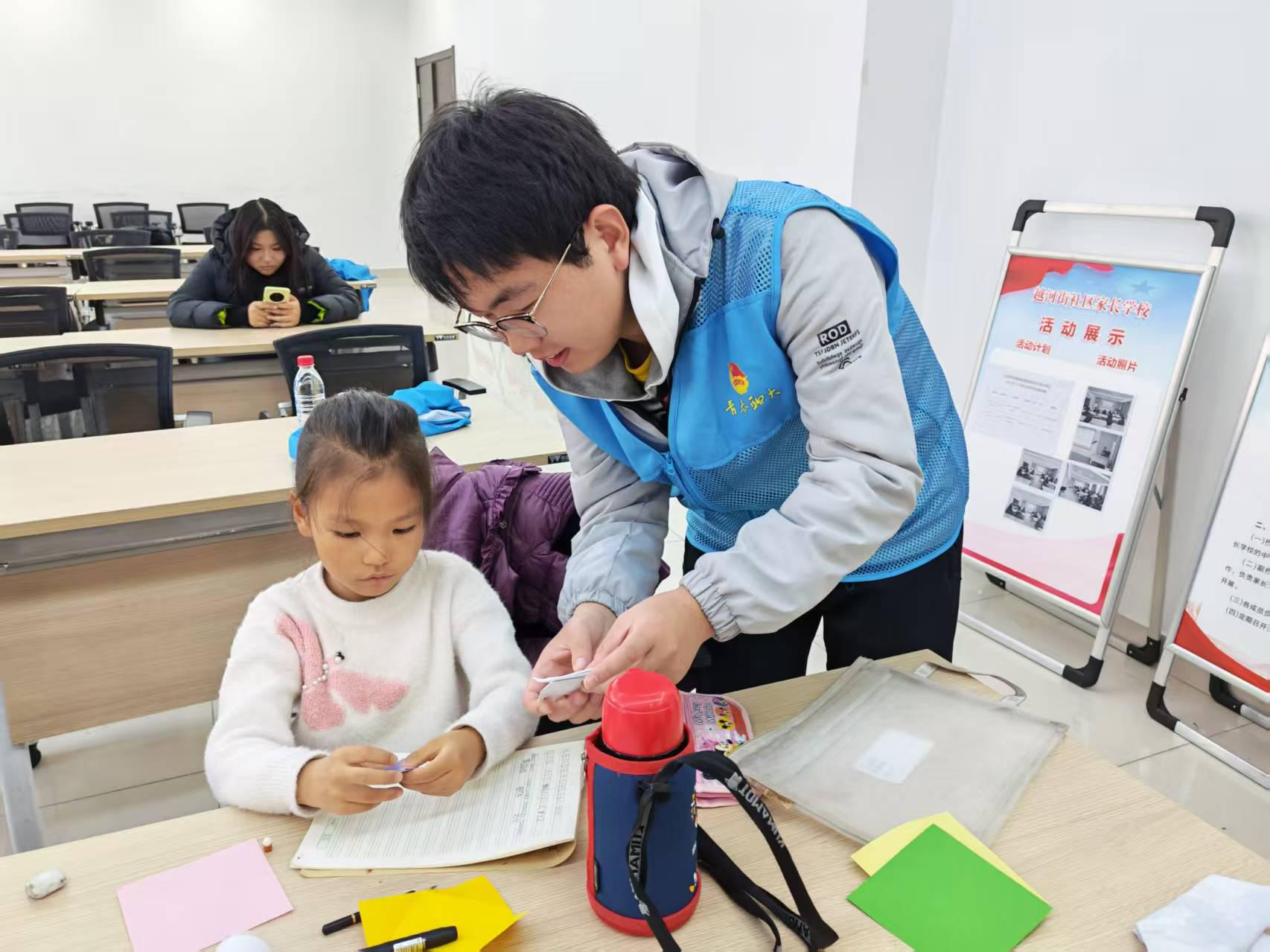 活动伊始,外国语学院的志愿者以“温故知新”为切入点,带领参与活动的儿童回顾上一次活动所学的英语单词,进一步夯实他们的语言基础。随后,志愿者围绕“职业”这一主题开展新内容的教学,借助趣味问答、情景模拟等形式,生动形象地讲解相关英语单词,助力孩子们轻松构建基础语言认知。在互动实践环节,志愿者亲自手把手指导孩子们进行折纸创作,充分锻炼了孩子们的动手能力、创造力和专注力。