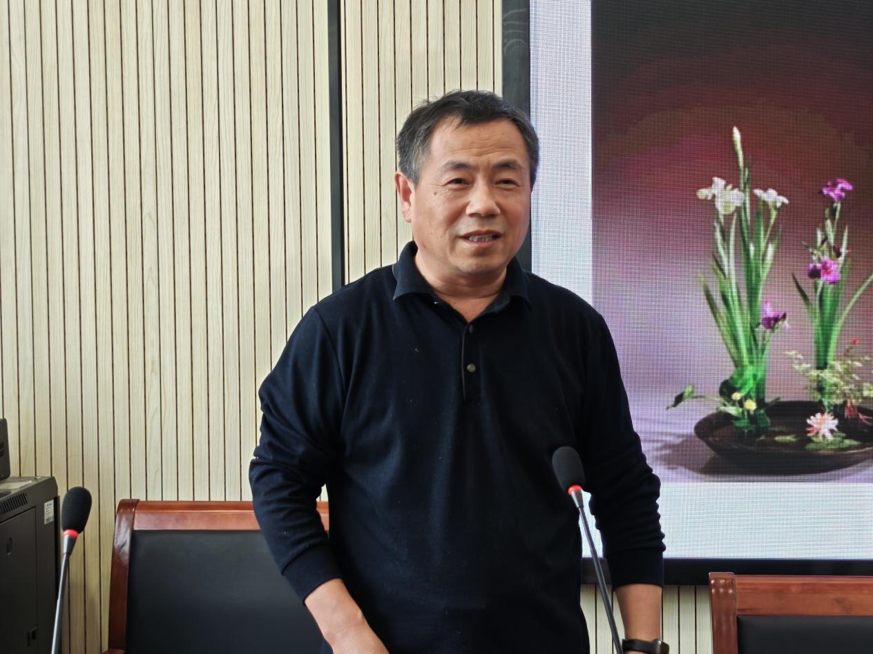 讲座以“非遗之美:中国传统插花文化与艺术”为主题,高祥斌老师首先阐述了插花艺术的概念,结合《秋》《君子之尊》等作品实例,解读其“以切花花材为媒介,融自然美与生活美”的艺术内核。他通过展示“国家级非物质文化遗产”认证牌匾,梳理传统插花自隋唐宫廷至宋代器具发展的历史脉络,带领学生感受这门艺术的千年传承。在核心讲解环节,高祥斌老师着重分析了传统插花的艺术特色:从保留花材姿态的“自然之美”,到以梅荷喻德的“意趣之美”;从依托木本花材的“线条造型”,到追求动态平衡的“不对称构图”,并结合“岁寒三友”“四君子”等文化意象,融入儒释道“中和”“天人合一”的哲学思想。此外,他借助“六大花型”图表与“鲜花保鲜六法”等实用知识,将专业内容转化为可操作的方法,并通过演示文稿展示直立型等插花作品,说明其“挺拔雄伟,适于隆重场合”的特点,帮助学生理解不同花型的应用场景,深入体会插花艺术的魅力。
