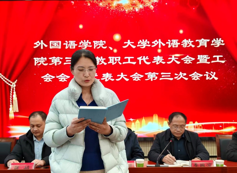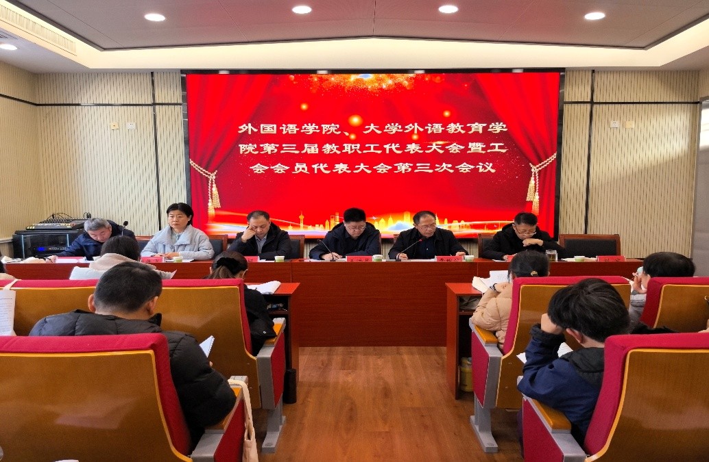 外国语学院(大学外语教育学院)第三届教职工代表大会暨工会会员代表大会第三次会议的顺利举行,不仅为外国语学院破解发展难题、夯实发展根基注入了强劲动力,也为推动外语教育事业高质量发展筑牢了思想基础与组织保障。