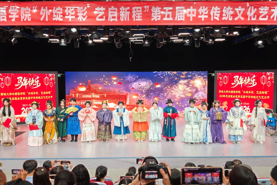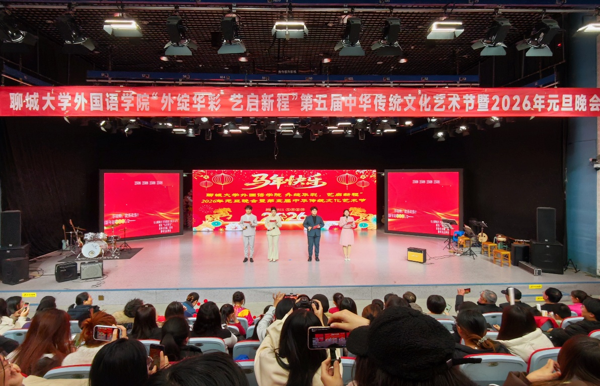 时序轮转,新元肇启。在这个时光交替的节点处,12月28日,外国语学院 “外绽华彩·艺启新程 ”第五届中华传统文化艺术节暨2026年元旦晚会在西校区综合实验楼11楼演播大厅温情启幕。