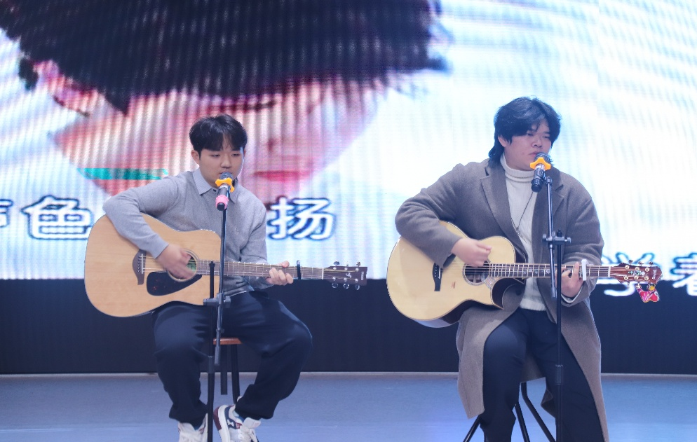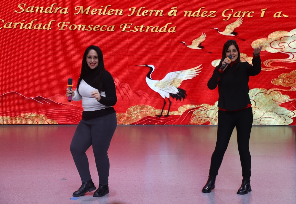 第三幕“同心向曜·共贺新元”,是多元文化与理想的交响共鸣,尽显跨文化交融的独特魅力。校舞蹈队的《恰恰恰》舞步热烈灵动,拉美风情的韵律在舞台上肆意绽放,点燃现场的欢乐氛围;Sandra Meilen Hernández García与Kirenia Caridad Fonseca Estrada带来的《Son de la Loma》,地道的西语民谣婉转悠扬,将拉美的风土人情娓娓道来;乒乓球队成员带来的《乒乓燃动·青春锋芒》表演,白球飞舞间尽现运动的激情与力量;潘星如的《家国志愿路·青春筑梦行》经验分享,以真挚的讲述传递志愿精神,让青春的意义在分享中升华;Tania Bess Reyes演唱的《Es esta Quizás》,西语歌声温柔又富有诗意,为舞台增添了别样的浪漫。
