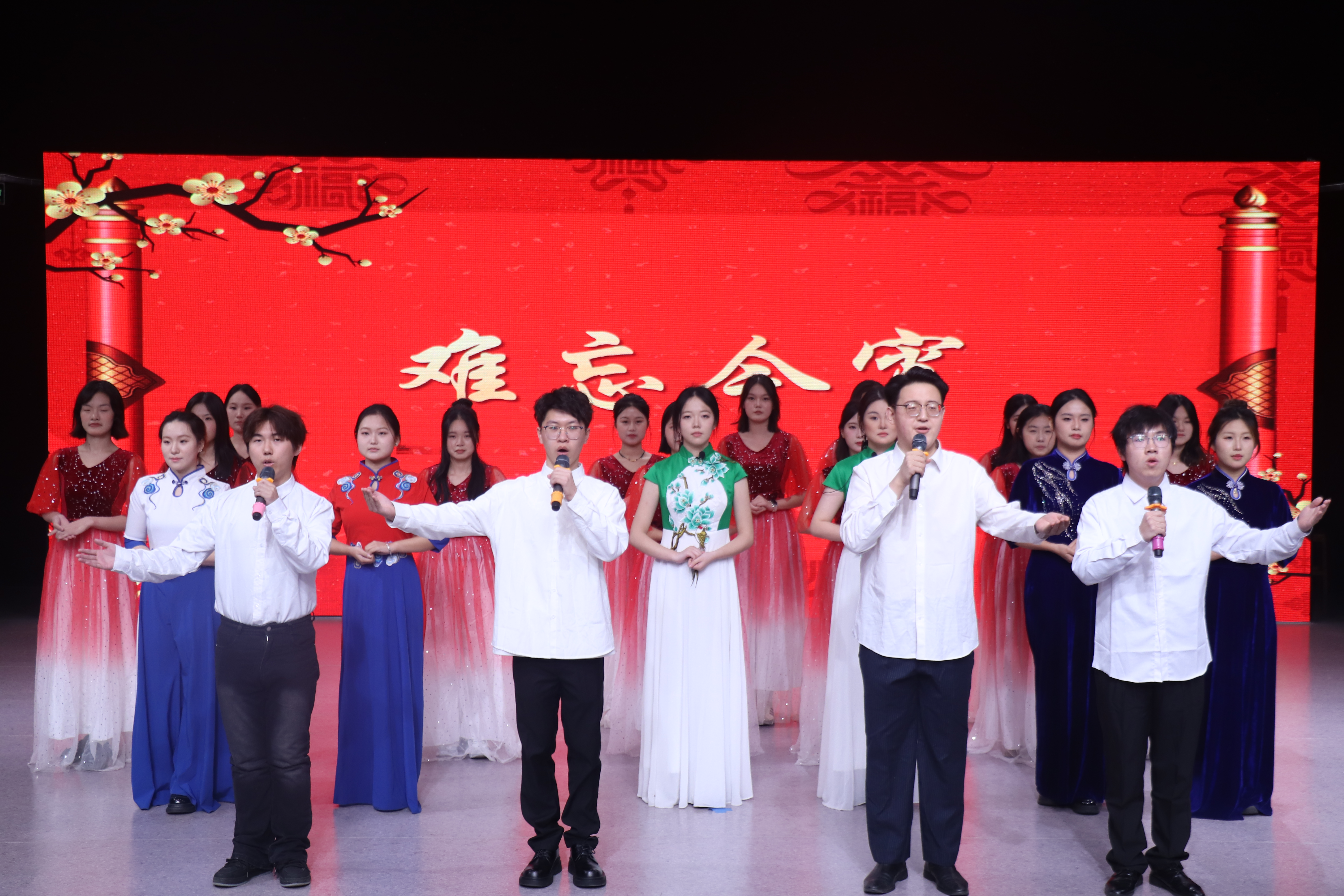 尾声环节,京歌《难忘今宵》悠然奏响。2023级汉教10班学生率先领唱,随后全体演职人员齐声合唱,熟悉的旋律裹挟着欢笑与暖意,牵动全场师生心弦。灯光下的青春身影,为这场元旦迎新晚会定格下温暖句点。