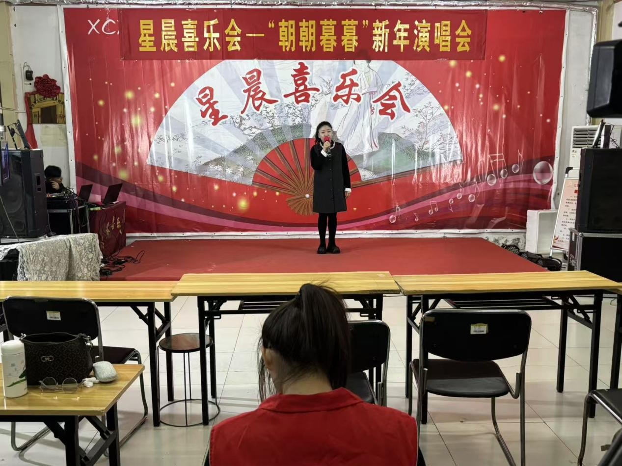 活动当天,外国语学院青年志愿者们早早到场,迅速投入场地准备工作,分工打扫卫生、布置桌椅、张贴装饰,用忙碌的身影筑牢活动保障,以细致服务诠释养老助老的初心,营造出整洁温馨的现场氛为丰富社区居民精神文化生活,提升青年学生团队协作以及社会实践服务能力,12月26日,外围。活动期间,“朝朝暮暮”组合及其他参与者倾情演绎经典旋律,精彩十足。志愿者们融入居民之中,暖心谈心、调动现场氛围,还用心捕捉演出精彩瞬间留存美好。演出中志愿者为表演者惊喜献花,让表演者笑颜绽放;活动尾声,志愿者受邀登台参与演出,将现场气氛推向高潮,也为这场文艺盛宴注入青春活力。志愿者们在与居民的互动交流中收获满满,既传递了温暖,也从中汲取了宝贵的人生智慧与成长启迪。