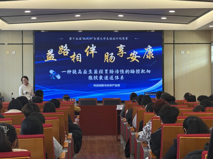 比赛现场,入围复赛的参赛团队依次登台进行答辩。各团队代表通过PPT展示、现场阐述等形式,围绕项目的市场痛点、核心技术、商业模式等核心内容展开阐述,涵盖人工智能、文化创意、绿色环保等多个前沿领域,内容兼具学术价值与实践意义。