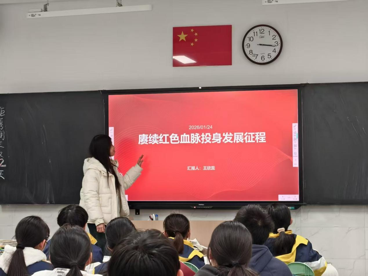 为引导青少年赓续红色血脉、厚植爱国情怀,2月3日,外国语学院青语传薪团队前往山东省肥城市第一高级中学,开展“赓续红色血脉,做新时代励志青年”主题宣讲活动。团队成员以PPT宣讲、互动提问与红色主题游戏相结合的形式,为学生们带来了一场生动深刻的思政教育课。