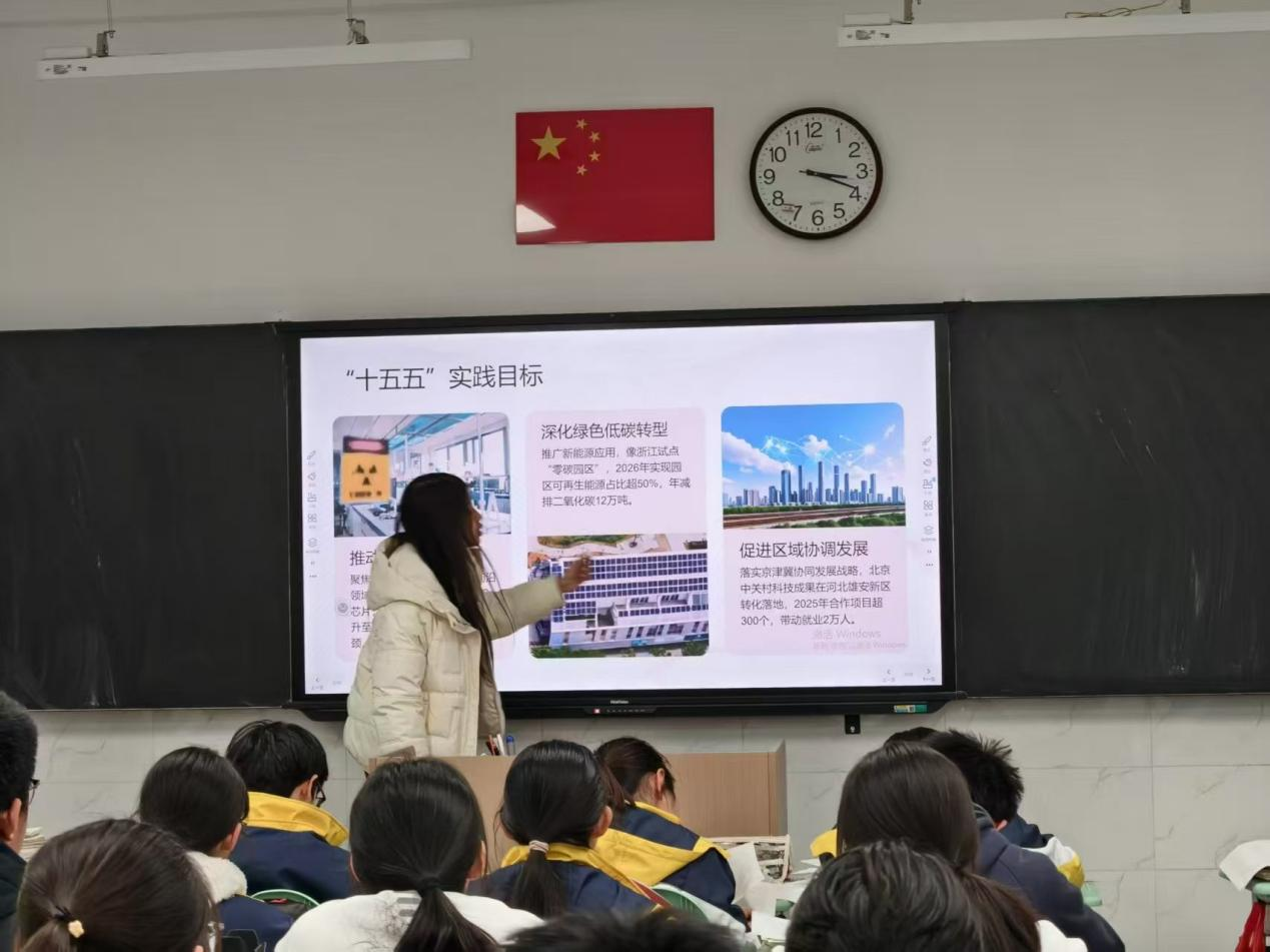 宣讲以《赓续红色血脉投身发展征程》PPT为核心,分两大板块展开。在“赓续红色血脉,挺膺复兴征程”板块里,成员们从红军长征中啃草根、飞夺泸定桥的壮举,讲到焦裕禄带领兰考群众治沙防涝的为民初心,再到王进喜“铁人精神”的奋斗故事,用鲜活的历史细节,让学生们读懂红色血脉里“坚定理想信念、坚守为民宗旨、传承奋斗精神”的深刻内涵。在“投身‘十五五’实践,服务高质量发展”板块,团队结合“十五五”规划中科技创新、绿色转型等目标,以“量子科技突破”“光伏产业园建设”等具体案例,让学生们明白个人成长与国家发展的紧密关联。互动环节中,红色知识问答里学生们踊跃抢答,情景模拟游戏里大家化身“红军战士”重走长征路,在趣味体验中深化了对红色精神的理解。