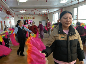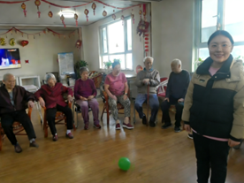 活动前期,学生与养老院提前沟通敲定细节,学生到场后高效完成场地布置,为活动开展做好充分准备。活动中,扇子舞环节学生为老人分发绸布扇并领舞,根据老人身体状态调整动作节奏,工作人员贴心辅助行动不便的老人;趣味踢球环节设置轮椅踢球形式且不设胜负,学生全程陪护老人完成踢球动作,及时捡球、调整球位,筑牢安全防线,两个环节让现场暖意融融、欢声笑语不断。活动尾声,学生协助工作人员将老人安全送回房间,并认真收拾好活动场地,活动在轻松温馨的氛围中圆满落幕。