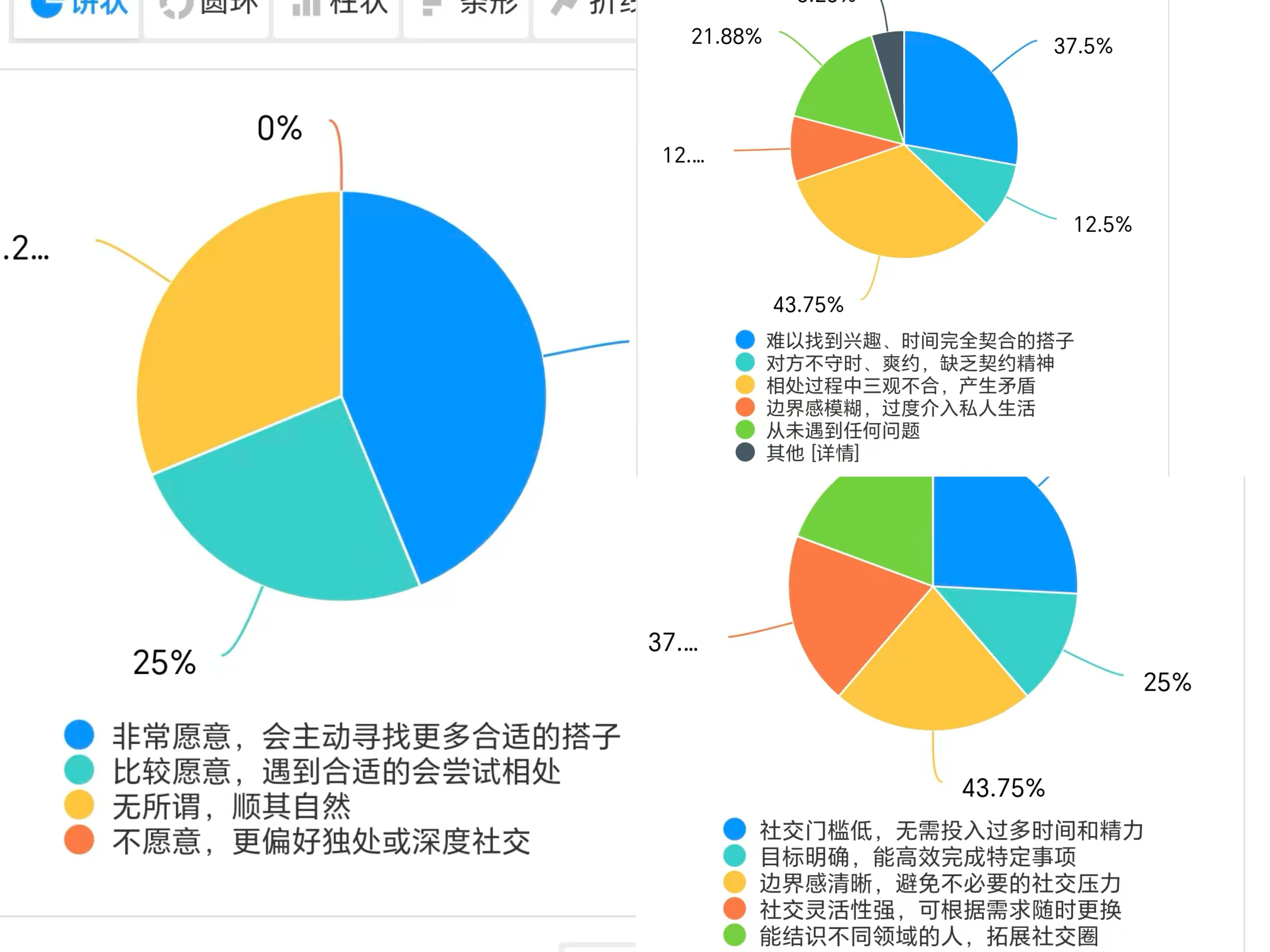 活动期间,参与学生通过线上问卷和线下采访的形式开展系统调研,围绕社交意愿、相处问题、核心优势、关系发展、选择标准、来源渠道及搭子类型七大维度展开全面统计。调研数据显示,超六成学生对搭子社交持积极态度,边界清晰、压力适中成为该社交模式的主要吸引力,人品可靠与兴趣契合是选择搭子的首要因素,搭子来源以身边熟人为主,娱乐、饮食、学习类搭子最为普遍。参与学生对数据进行整理归纳、深度分析,总结当代大学生社交需求、社交特点与社交规律,形成完整详实的调研成果。