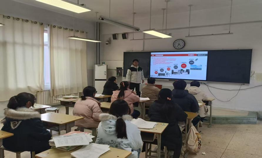 为助力2026年聊城大学本科招生宣传工作,进一步提升学校社会知名度与生源质量,2月10日,外国语学院阳光男孩阳光女孩实践队于滕州市第一中学东校区腾云北楼举办寒假优秀学子回访母校宣讲活动。本次活动特邀滕州一中高三优秀班主任史孝瑜出席,黄阳东担任主讲人,崔益宁担任负责人,滕州一中高三部分班级学生积极参与。