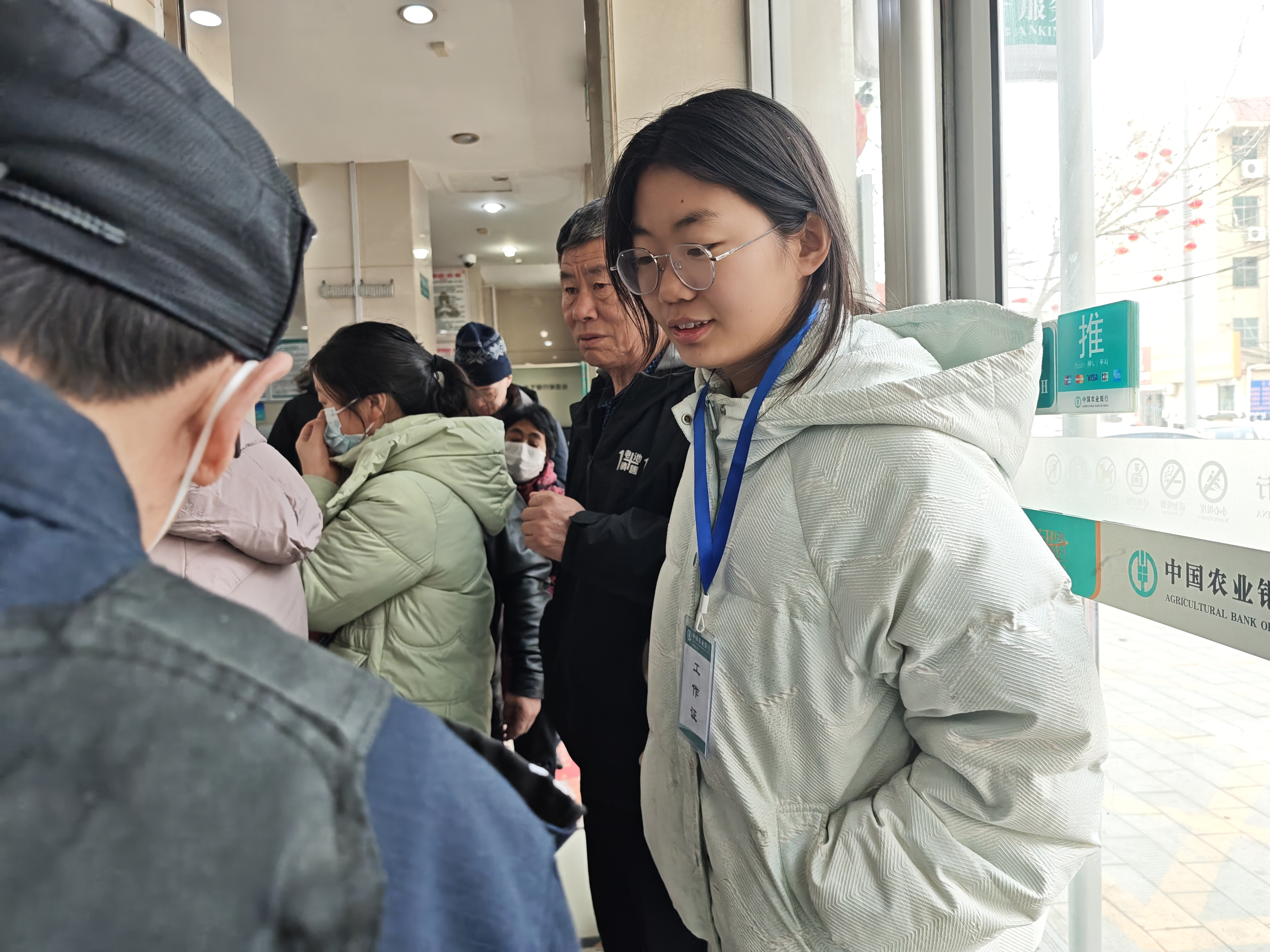 为践行尊老敬老传统美德,以实际行动关爱老年群体,2月25日,外国语学院学生志愿者冯俊珺前往中国农业银行鄄城县支行,以志愿接待员身份开展暖心社会实践,为老年客户提供便捷、细致的金融服务支持。