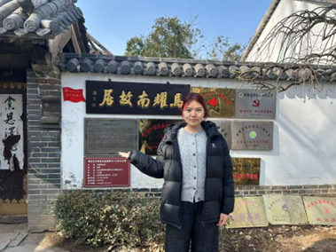 活动现场,队员提前研读马耀南烈士的革命历程与《马耀南日记》核心内容,为游客提供讲解服务。从他弃文从戎组建抗日武装的抉择,到浴血奋战、坚守民族气节的壮烈事迹。队员们以饱满的热情和详实的叙述,让参观者深刻感受革命先烈的家国情怀。讲解过程中,队员还通过互动问答、实物展示等形式,让红色故事更具感染力,参观者驻足聆听,沉浸在那段波澜壮阔的革命岁月中。活动结束后,实践队充分发挥英语专业优势,精心剪辑活动片段、整理双语讲解素材,制作成沉浸式参观vlog。视频以英文解说为主、中文字幕辅助,系统呈现马耀南故居的历史底蕴与烈士的革命精神,通过校园平台与社交媒体传播,让红色文化突破语言壁垒,触达更广泛受众。