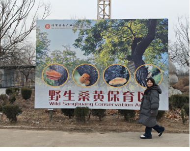 夏津黄河故道作为古黄河流经之地,积淀了深厚的历史底蕴。调研过程中,学生志愿者首先来到“子母桑”古树区域,通过现场介绍了解到,该古桑树群历经数百年风雨,不仅是重要的生态资源,更承载着当地先民与自然共生的传统智慧,是黄河故道桑文化的重要象征。在野生桑黄保育区,志愿者实地察看了依托古桑树培育的珍稀药用真菌桑黄,并通过德百古桑产业技术研究院的相关展示,系统学习了从古桑种植到桑黄培育、从生态保护到产业开发的完整链条。先进的菌种选育技术、科学的林下种植模式与规范化加工体系,让志愿者直观感受到传统桑资源与现代科技深度融合的实践成果。
