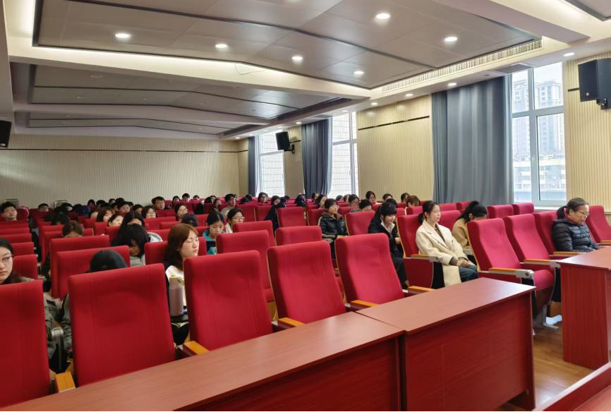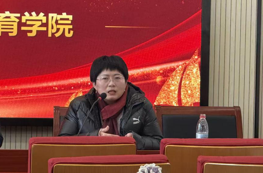 大会第二项,教师指导传经验。实习带队教师代表张庆艳老师发言,结合自身指导经验,从安全问题、纪律规定、教学技巧、沟通方式等多个维度,为同学们作了细致的实习指导,分享实用经验与注意事项,叮嘱同学们虚心学习、主动实践,快速适应实习岗位,顺利开展教学工作,让在场同学深受启发。