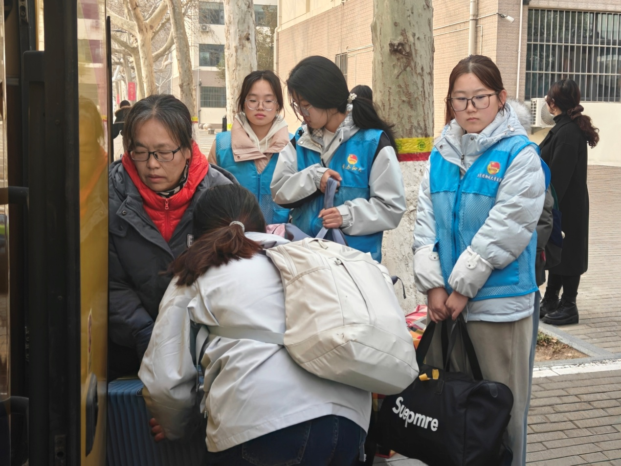 临行前,学院领导与教师与支教学生亲切交谈,勉励支教学生珍惜基层实践机会,将专业知识融入课堂教学,把关爱与责任传递给每一位学生;同时叮嘱学生在支教期间注意安全,保持积极心态,在实践中勤学善思、锤炼本领,展现外国语学院学子的优良学风与青春风采。随着发车指令下达,支教学生有序登上大巴,与送行师生挥手告别,奔赴各自支教岗位。
