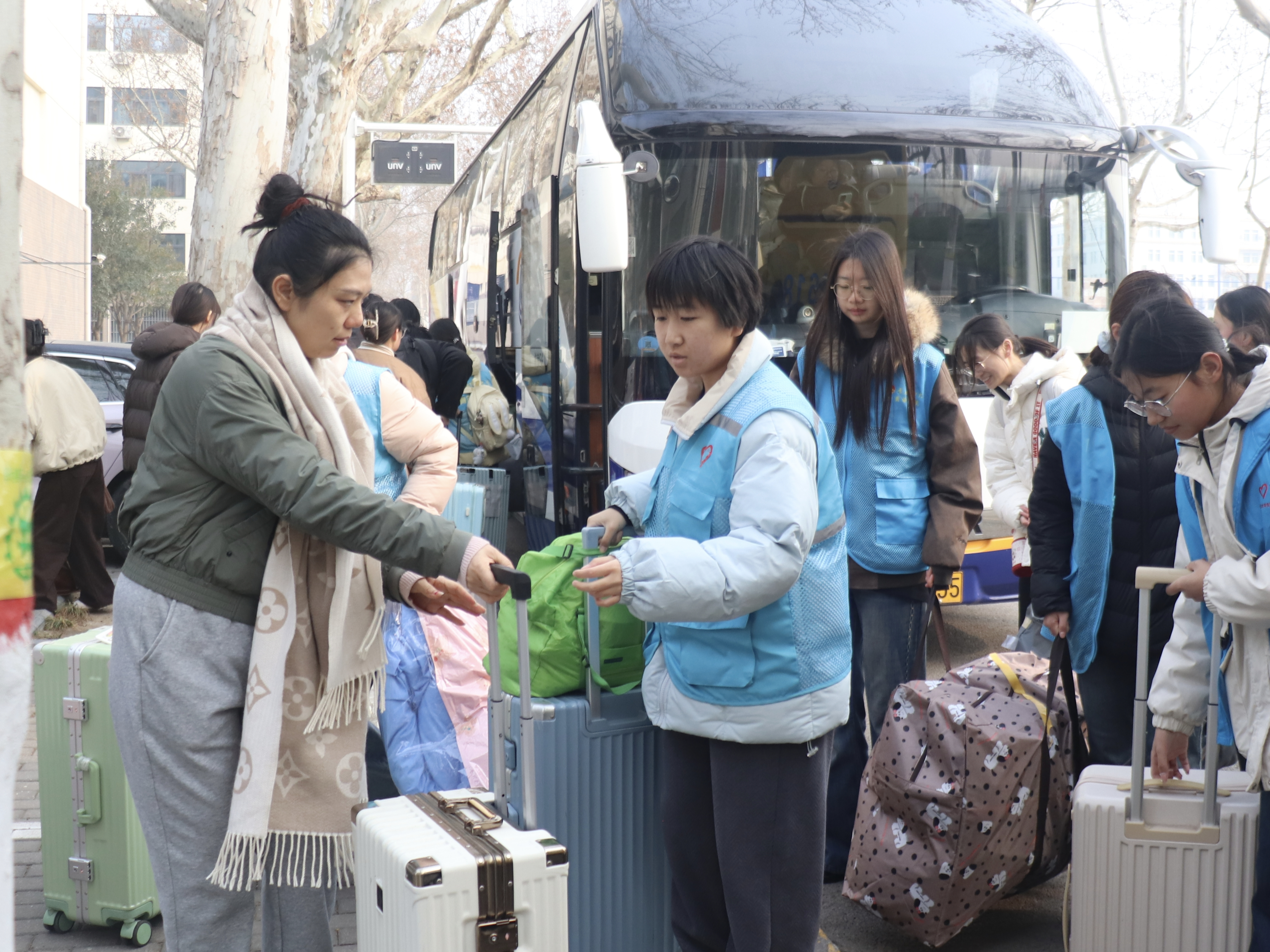 出征当日清晨,外国语学院副院长秦洪庆,学院团委书记孙哲,辅导员钱晓琪,实习带队教师辛红、张庆艳等学院教师及学生志愿者齐聚西校区操场主干道,为支教学生暖心送行。老师们与志愿者全程协助支教学生整理、搬运行李,仔细清点物资、检查备品,做好各项出征保障工作。支教学生身着整洁着装,精神饱满、意气风发,行李中整齐摆放着备课资料与教学用品,展现出投身基层教育事业的坚定信心与良好风貌。