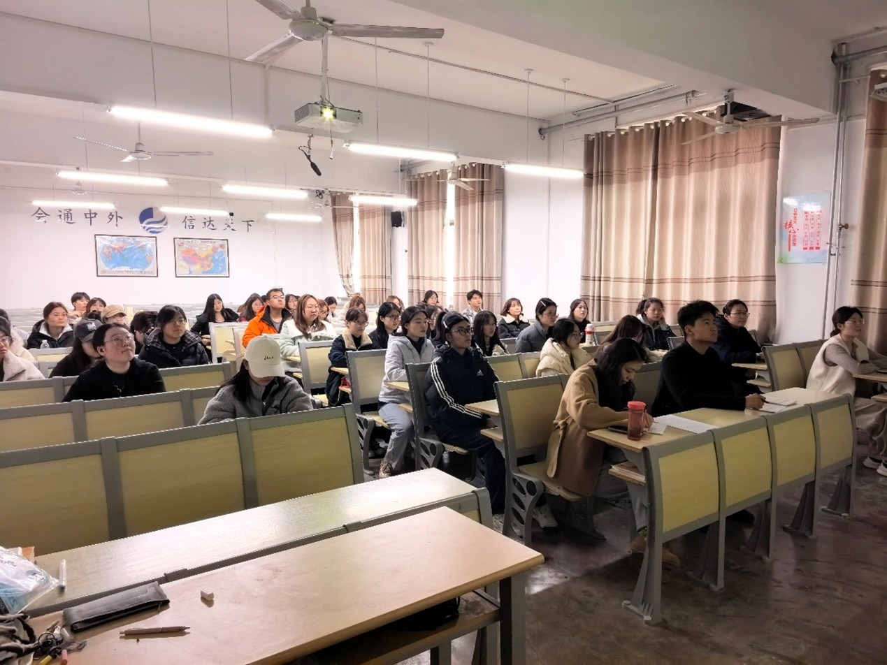 为深化书香校园建设,激发青年学生阅读热情,提升语言表达与思辨能力,彰显外国语学院学子人文素养,3月15日,外国语学院“校园十佳讲书人”评选活动顺利开展。外国语学院专业教师代表担任评委,百余名学生到场观看比赛,现场气氛热烈有序。