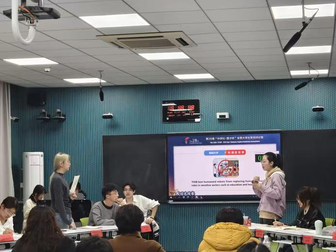 3月22日决赛现场,八位晋级选手围绕科技与社会发展热点辩题“THW completely ban humanoid robots in sensitive positions such as medical care and education.”(应全面禁止人形机器人进入医疗、教育等敏感岗位)展开唇枪舌战。正反双方凭借缜密的逻辑体系和多元扎实的论据支撑展开交锋:正方从岗位专业性、人文关怀本质、风险可控性等角度,论证人形机器人进入敏感岗位的弊端与禁令的必要性;反方则从科技赋能效率、资源补充价值、技术发展趋势等维度,剖析人形机器人在敏感岗位的应用优势与发展潜力。选手们在立论深度、论证严谨性及临场反应上均表现优异,面对对方的犀利质询,敏捷回应、从容拆解论点,呈现了一场兼具语言之美与思辨之深的高水平对决。