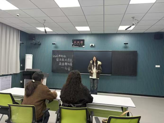 为厚植学生外语素养,锤炼逻辑思辨与跨文化表达能力,落实“以赛促教、以赛促学、以赛促练”育人理念,3月22日,聊城大学2026年“外研社・国才杯”全国大学生英语辩论赛校园选拔赛决赛在西校区1号楼A212教室圆满举行。学院张慧、张庆艳、张媛教师担任评委,往届优秀选手宗耀辉担任主持,8名晋级选手展开巅峰对决。 本届赛事自启动以来,吸引全校学子踊跃参与,采用初赛、半决赛、决赛三阶晋级制,以差异化热点辩题和科学赛制,全方位检验选手的英语综合应用、临场思辨与团队协作能力。初赛以个人赛形式开展,参赛选手围绕抽取题目独立完成观点阐述、立论陈词与总结陈述全流程展示,随后接受评委现场提问并进行答辩,最终16名优秀选手脱颖而出,成功晋级半决赛。