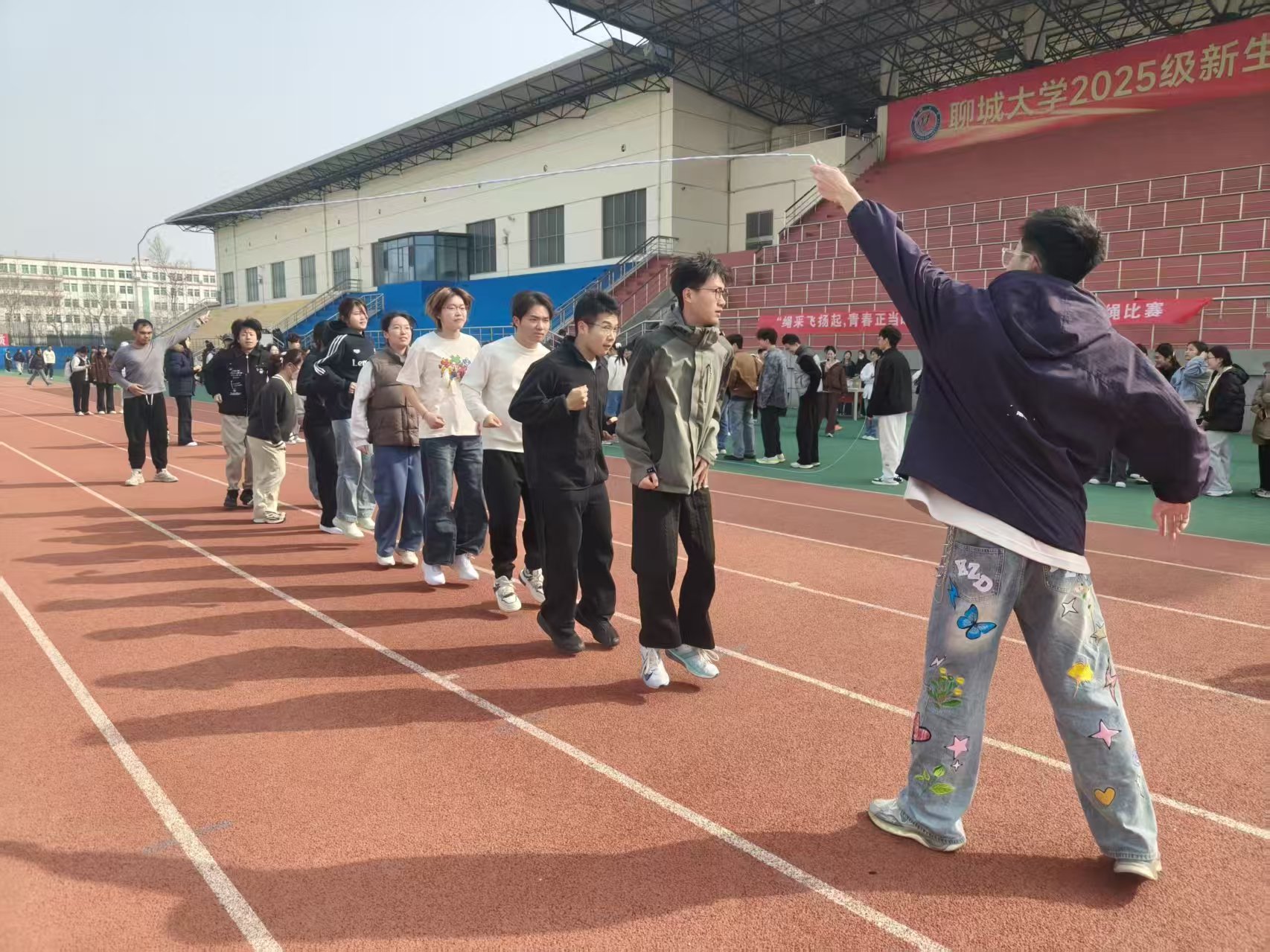 为丰富校园文化生活,增强学生身体素质,培养团队协作精神,3月22日,外国语学院参与“绳采飞扬起,青春正当时”聊城大学2026年春季长绳比赛。外国语学院学生积极组队参与,与其他学院选手在春日暖阳中展开激烈角逐。