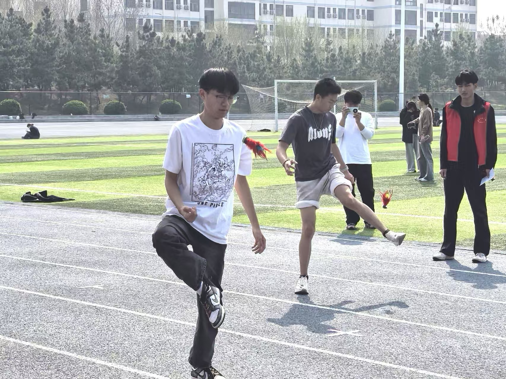 比赛中,外国语学院参赛学生精神饱满、沉着应战。在男子个人赛环节,选手们全神贯注,灵活控制毽子起落节奏,以稳定的发挥完成规定时长内的连续踢毽动作。女子个人赛中,参赛学生动作轻盈、衔接流畅,毽子在脚尖与脚侧间自如转换,展现出扎实的基本功与良好的心理素质。团体赛环节,队员们密切配合、轮转有序,通过默契的传接与节奏把控,顺利完成多轮次集体踢毽任务。赛场上,参赛学生专注投入,现场气氛热烈。