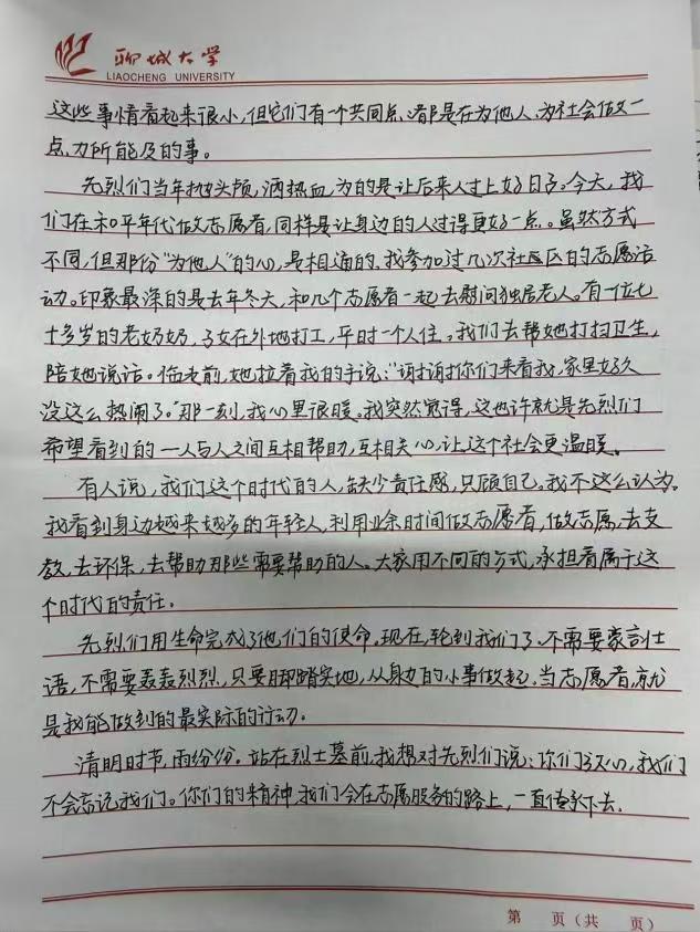 为传承红色基因、弘扬志愿精神,引导学生在清明节缅怀革命先烈、厚植爱国情怀,4月3日,外国语学院百灵鸟青年志愿者协会举办“清明祭英烈,志愿我先行”线上主题作品征集活动,外国语学院18名学生积极参与本次活动。