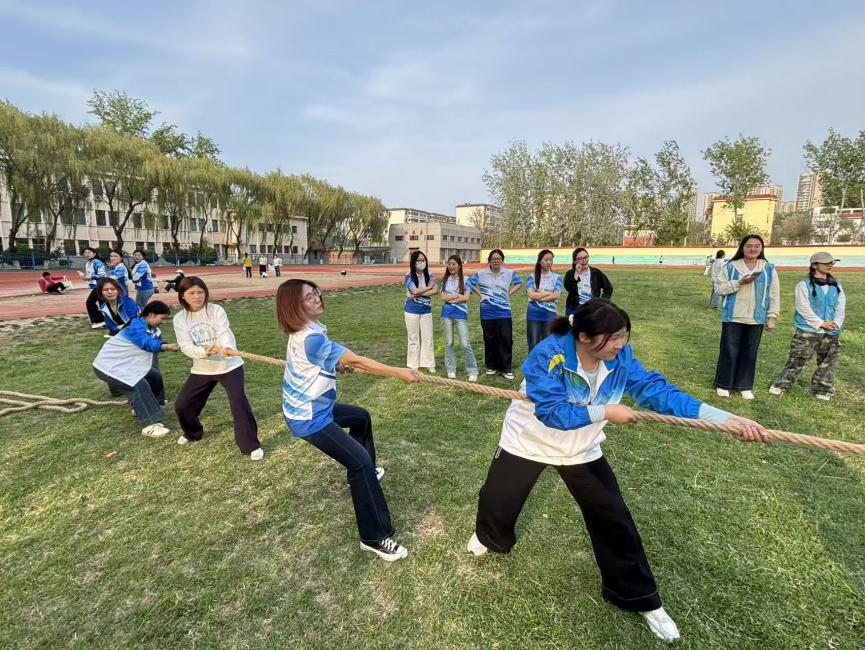随着一声响亮的开赛指令,操场化身满是欢乐的竞技场。各队队员们在热身活动中灵活穿梭,为找到空位而雀跃,没找到位置的同学,也大方分享着“多喝了一杯温水”这样微小却甜蜜的爱己瞬间;在图形与汉字的传递挑战中,大家排成一列,在队友身后轻轻书写、悄悄传递,小心翼翼又默契十足,偶尔的小偏差也惹来阵阵可爱的笑声。集体跳绳时,队员们同频共振,腾空落地的整齐划一,见证着默契的不断升级;拔河赛场更是热血沸腾,大家脚蹬实地、身体后倾,在绳子的拉扯中把力量与信任、团结与坚持凝聚在彼此心中。激烈比拼过后,大家围坐在一起,在温暖的氛围里提笔写下给自己的温情小字条,将温柔与期许悄悄珍藏。学生们在欢笑中释放压力,在陪伴中关爱自己,尽显温柔又向上的青春模样。