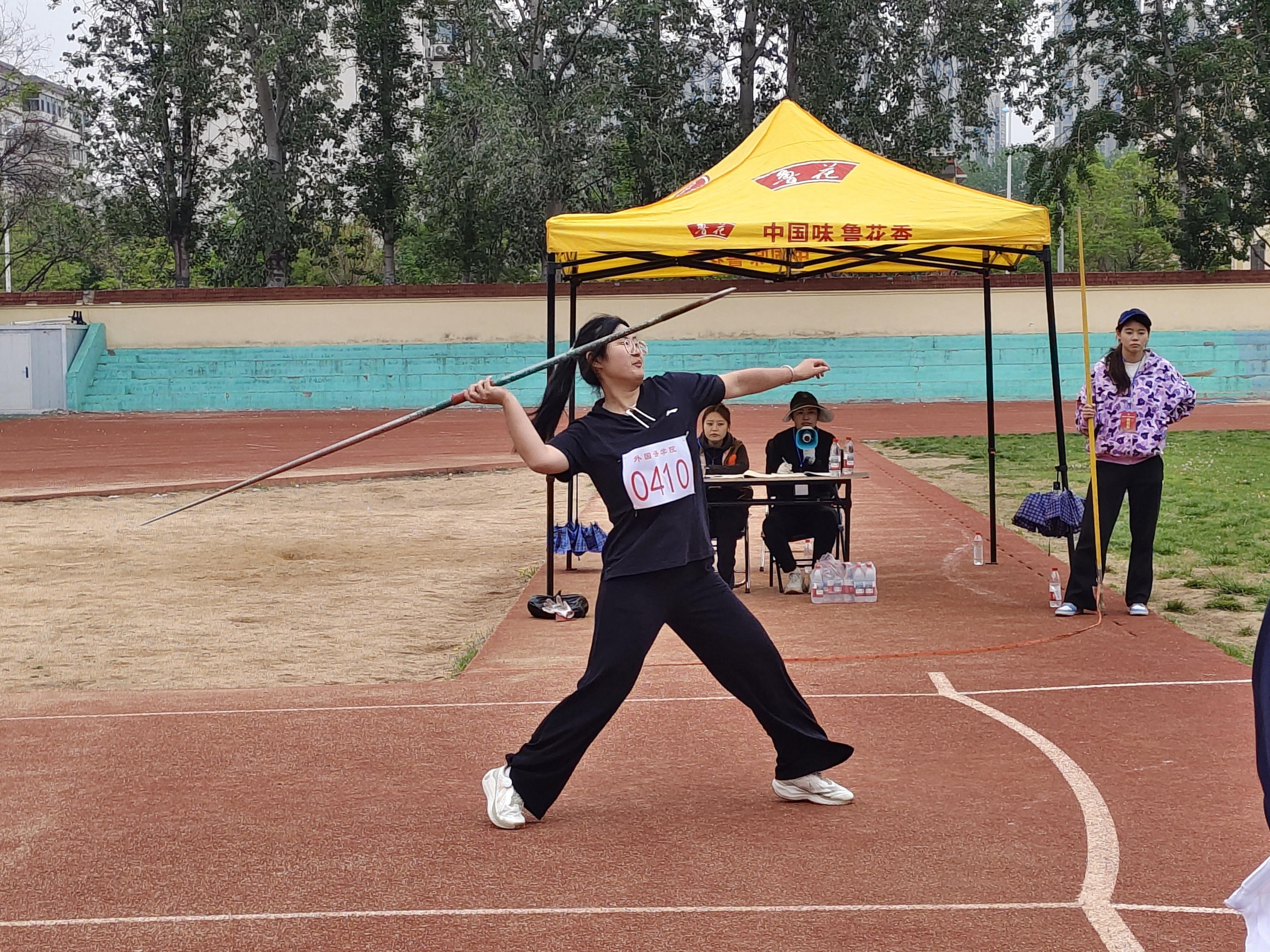助跑、交叉步、引枪、挥臂投出,动作一气呵成。标枪如流星划破长空,带着呼啸声远远落下,无数次训练打磨出的技术在这一刻完美呈现。最终,蔡文文勇夺标枪第二名,郝丹琪获得标枪第四名。